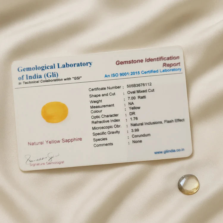 Pukhraj is a radiant yellow gemstone, often sourced from Bangkok. Associated with the planet Jupiter, it is believed to bring good fortune, prosperity, and success. Many wear it to advance in their careers while inviting peace and happiness into their lives.