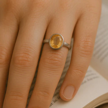 A simple gold ring with Pukhraj on the index finger of your right hand blends elegance with prosperity.